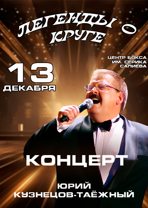 Актер нашумевшего сериала Легенды о круге в первые с концертами в нашей стране и самое приятное что первым городом станет Караганда, на концерте вас ждёт живой звук и живое исполнение которое подарит нам Юрий Кузнецов Таёжный, давайте в месте вспомним Михаила Круга и спаём легендарные песни.