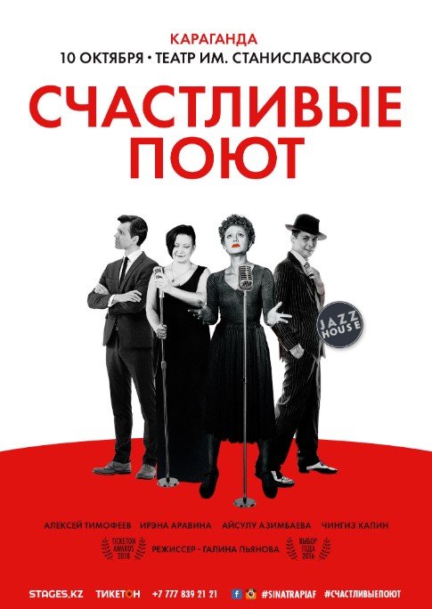 Проект, посвящённый 100-летию двух гениев - Фрэнка Синатры и Эдит Пиаф - стал одним из главных культурных событий 2016 года в Казахстане. Спектакль, премьерный показ которого собрал два полных зала, продолжает идти с неизменными аншлагами в Алматы и Астане. Команда «Счастливые Поют» только что вернулась из столичных гастролей, где с оглушительным успехом выступила во второй раз, и уже с нетерпением ждет очередной встречи с алматинской публикой!