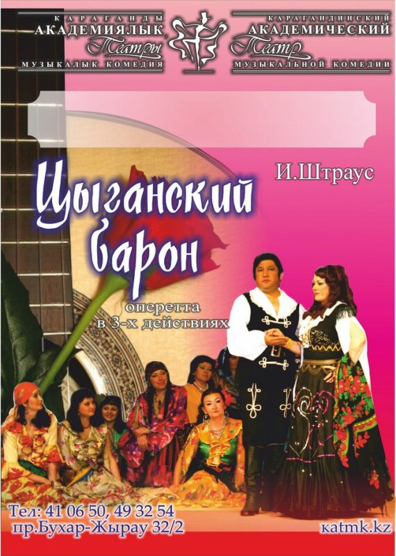 Оперетта поставлена в годы расцвета театра, когда создавались необыкновенные, по советским меркам, произведения искусства. Оперетта И.Штрауса «Цыганский барон» в Карагандинском театре музыкальной комедии идет с неизменным успехом и в данное время, потому что не подвержена времени, потому что поставлена в лучших классических традициях, потому что новое поколение артистов театра сохраняет все особенности первоначального варианта. Сложные вокальные партии, отличное сценографическое решение, характерные для времени костюмы – все это несомненно влияет на впечатление от просмотра и создает только благоприятную обстановку в зале и на сцене. На протяжении всего действия зрители видят непрекращающийся ослепительный поток персонажей, перепитий сюжета, танцевальных номеров и профессионального вокала.
