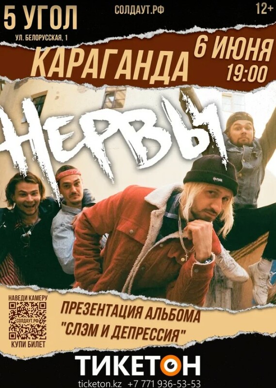 6 июня 2019 года в клубе «5 Угол» состоится большой концерт рок-группы «Нервы». В конце февраля музыканты выпустили свой новый альбом – шестой по счету – под названием «Слэм и депрессия». Группа впервые исполнит новый альбом в Казахстане.