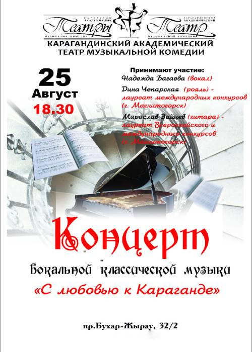 Тонкая лирика романов о любви, весне и природе оставит в ваших сердцах тепло. Концерт посвящён родному городу Караганде и карагандинцам.
