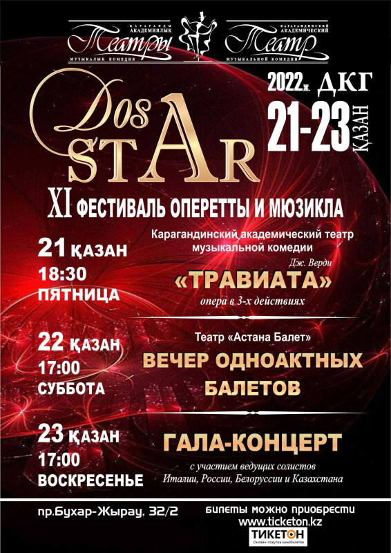 В рамках XI Открытого фестиваля оперетты и мюзикла «DosStar» для зрителей будет представлена опера Дж.Верди «Травиата».