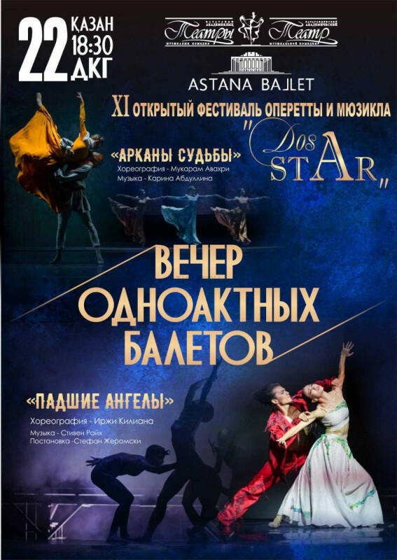 В рамках XI Открытого фестиваля оперетты и мюзикла «DosStar» театр «Астана балет» представляет Вечер одноактных балетов, представленный двумя балетами.