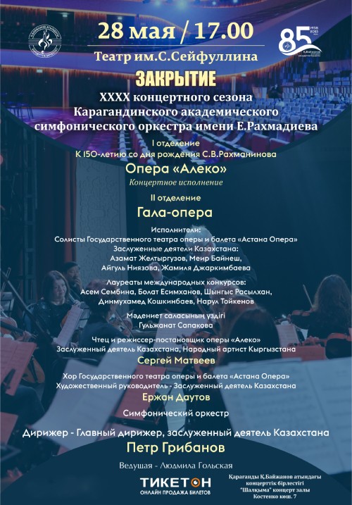 Описание Закрытие ХХХX концертного сезона академического симфонического оркестра имени Е.Рахмадиева «Гала опера», с участием хора и солистов театра «Астана Опера»