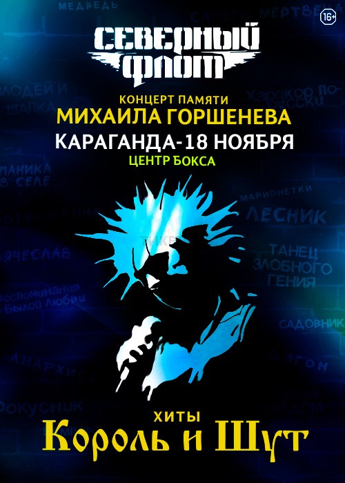 18 ноября в Центре бокса холл «Северный Флот» выступит с большим концертом, посвящённом Михаилу Горшенёву и группе «Король и Шут».