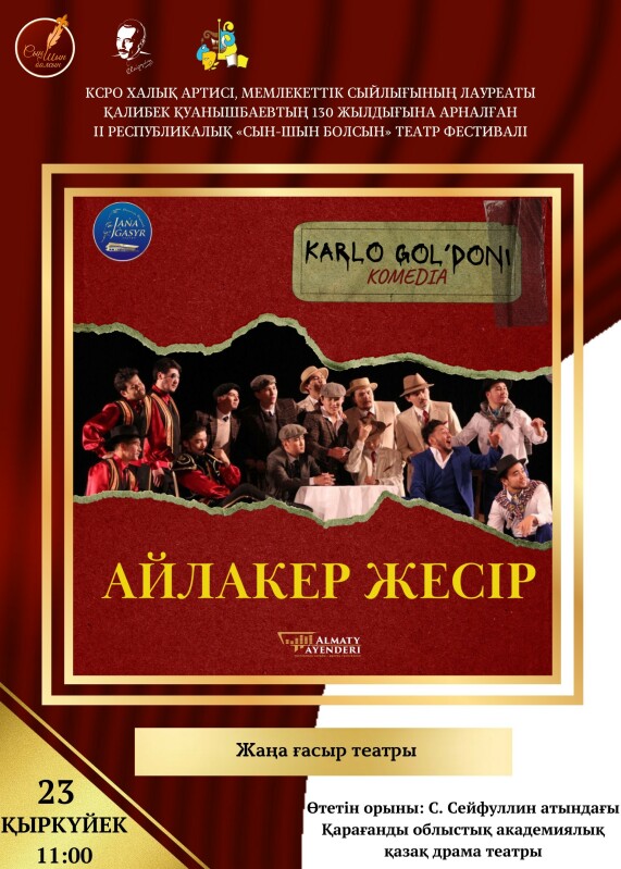 Өтетін орны: Қарағанды қаласы, Бұқар Жырау даңғылы, 25, Сәкен Сейфуллин атындағы Театр