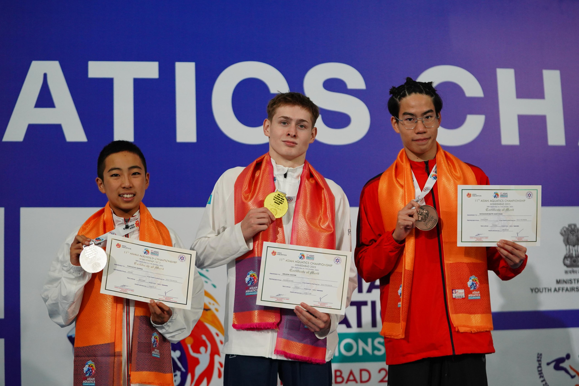 Чемпионат Азии по водным видам спорта проходит с 28 сентября по 11 октября в индийском городе Ахмедабад. Сборная Казахстана сейчас занимает третье место в общем зачёте, уступая лишь командам из Китая и Японии. В настоящее время в копилке сборной уже 4 золотых, 5 серебряных и 4 бронзовых медалей.