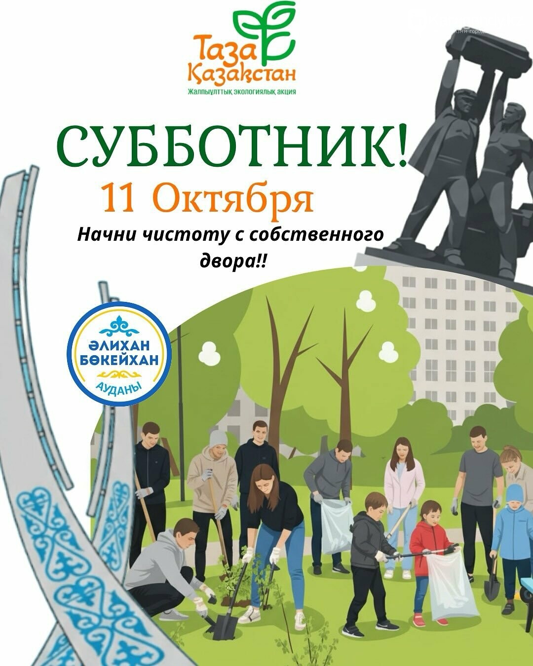 Акимат района имени А. Бокейхана приглашает жителей, представителей малого и среднего бизнеса принять участие в осеннем субботнике, который состоится 11 октября, сообщает корреспондент ekaraganda.kz.