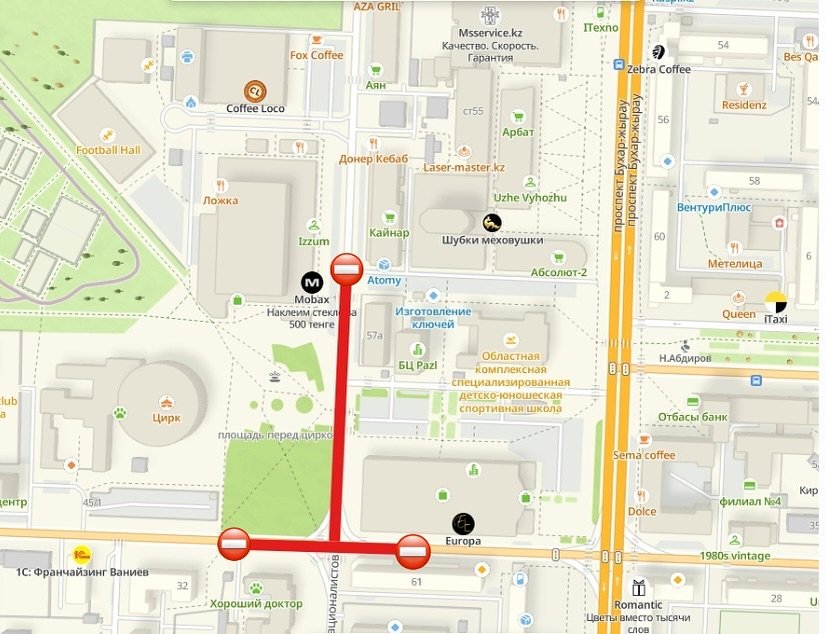 В Караганде временно перекроют движение на пересечении улиц Воинов-Интернационалистов и Комиссарова