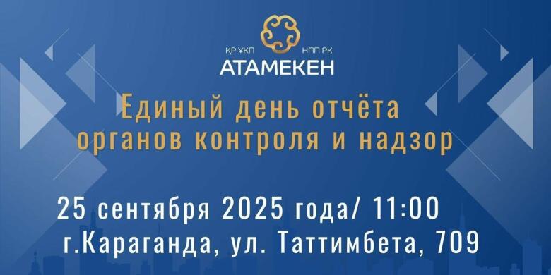 Предпринимателей Карагандинской области приглашают на Единый день отчёта. Ежегодная встреча с представителями государственных и контрольно-надзорных органов проводится ежегодно для повышения взаимодействия. В этом году она состоится 25 сентября в 11:00 в конференц-зале РПП «Атамекен» (ул. Таттимбета, 709, 2-й этаж). На встрече предпринимателям расскажут о результатах работы в сфере контроля и надзора. Также можно будет узнать о новых требованиях и изменени...