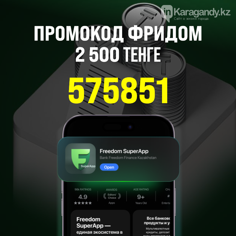 Используйте промокод для новеньких: 575851 при регистрации в приложение "Freedom SuperApp" и получите 2500 тенге в виде приветственного бонуса!