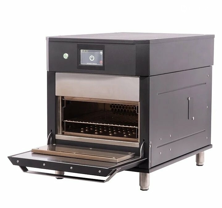 используется на предприятиях общественного питания и торговли для приготовления мяса и рыбы, выпечки хлебобулочных и кондитерских изделий. Модель оснащена сенсорным экраном. Корпус выполнен из окрашенной стали.